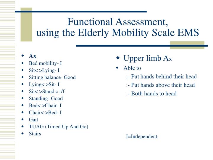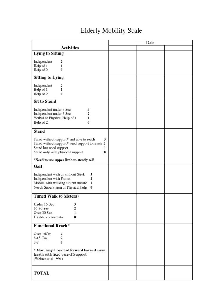 Elderly mobility scale pdf. Elderly Mobility Scale EMS Summary. Microsoft Word - AGILE Outcome measures EMS v20 Author. This is why the interpretation of the elderly mobility scale EMS calculator refers to the patients capability to perform ADLs.