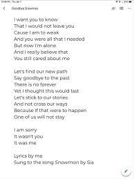 Get the ad-free and most optimal full-featured Sporcle experience. Monkey Puzzle MusicSnowman LyricsDont cry snowman not in front of meWholl. Find more of Sia lyrics.